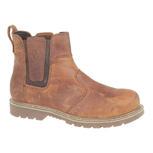 Amblers Unisex FS165 Unisex SB P SRA Chelsea Safety Boots Brown They have a slip and oil resistant rubber sole, and a steel midsole to protect from penetration hazards. The steel toe cap protects from impacts and compression. The sole is Goodyear welted for durability. With twin elasticated gussets and a finger loop, these are easy to pull on, and the textile lining is comfortable. The crazy horse leather is soft yet durable, perfect for work in ease. Upper: Crazy Horse LeatherLining: TextileSole: Goodyear Welted Non-Marking Rubber