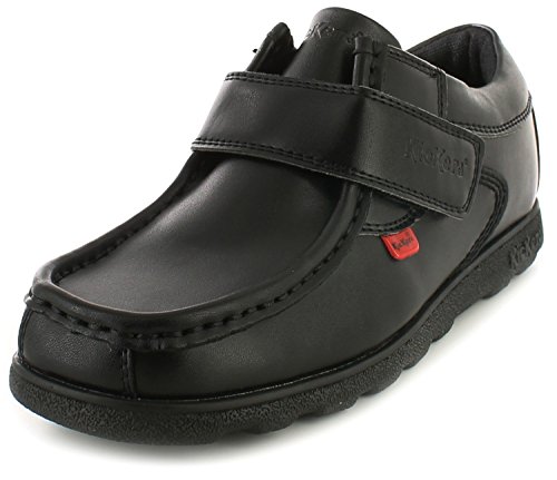 Kickers Fragma Strap Childrens / Boys Footwear Shoes. Boys/childrens moccasin touch strap fastening school shoes. Super strong hook and loop fastenings for hassle free on/off.aLl day comfort. Cushioned foam foot bed. Sporty style sneaker silhouette.. Black.